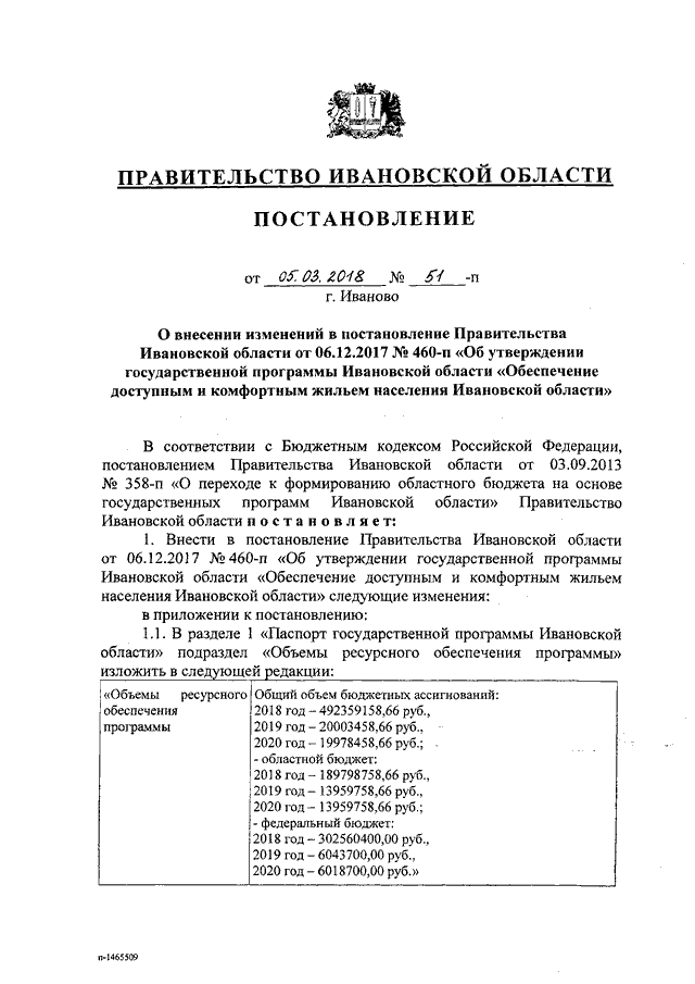 Постановление Правительства Ивановской области от 05.03.2018 N 51-п "О внесении изменений в постановление Правительства Ивановской области от 06.12.2017 N 460-п "Об утверждении государственной программы Ивановской области "Обеспечение доступным и комфортным жильем населения Ивановской области" (вместе с "Проектами по развитию территорий, предусматривающих строительство жилья на территории Ивановской области")