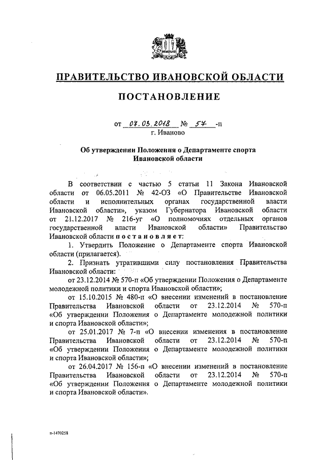 Постановление Правительства Ивановской области от 07.03.2018 N 57-п "Об утверждении Положения о Департаменте спорта Ивановской области"
