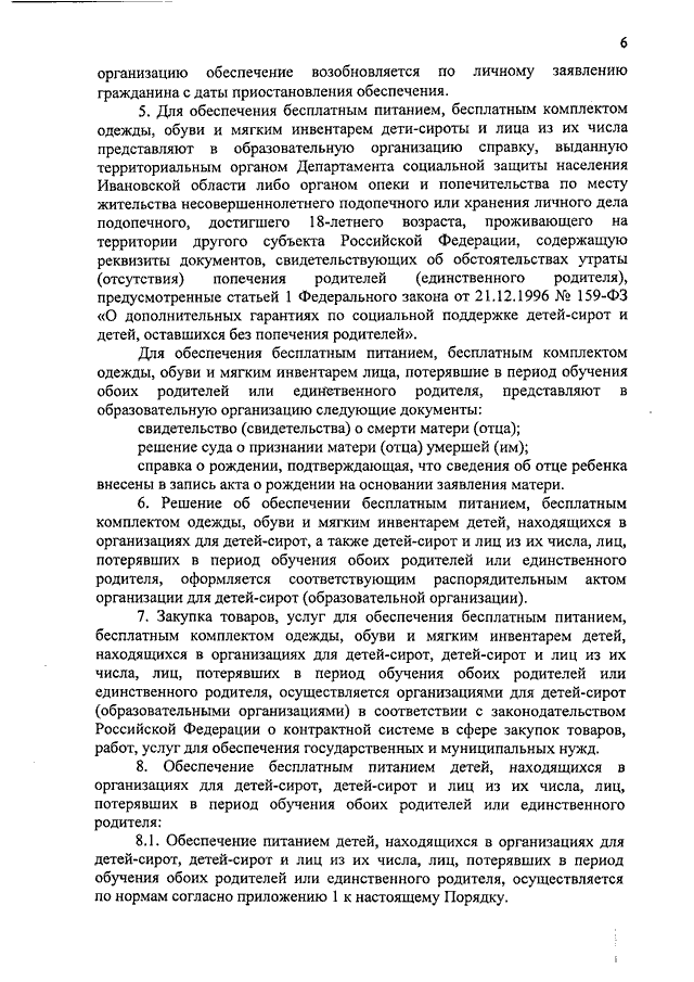 Постановление Правительства Ивановской области от 19.03.2018 N 62-п "Об обеспечении дополнительных гарантий по социальной поддержке детей-сирот и детей, оставшихся без попечения родителей, лиц из числа детей-сирот и детей, оставшихся без попечения родителей, а также лиц, потерявших в период обучения обоих родителей или единственного родителя" (вместе с "Порядком обеспечения за счет средств областного бюджета бесплатным питанием, бесплатным комплектом одежды, обуви и мягким инвентарем детей, находящихся в организациях для детей-сирот и детей, оставшихся без попечения родителей, а также детей-сирот и детей, оставшихся без попечения родителей, лиц из числа детей-сирот и детей, оставшихся без попечения родителей, лиц, потерявших в период обучения обоих родителей или единственного родителя, обучающихся по очной форме обучения по основным профессиональным образовательным программам за счет средств областного бюджета и (или) по программам профессиональной подготовки по профессиям рабочих, должностям служащих за счет средств областного бюджета", "Порядком обеспечения бесплатным комплектом одежды, обуви, мягким инвентарем, оборудованием и единовременным денежным пособием выпускников организаций для детей-сирот и детей, оставшихся без попечения родителей, в которых они обучались и воспитывались за счет средств областного бюджета, выпускников организаций, осуществляющих образовательную деятельность, обучавшихся по очной форме обучения по основным профессиональным образовательным программам за счет средств областного бюджета и (или) по программам профессиональной подготовки по профессиям рабочих, должностям служащих за счет средств областного бюджета, - детей-сирот и детей, оставшихся без попечения родителей, лиц из числа детей-сирот и детей, оставшихся без попечения родителей, лиц, потерявших в период обучения обоих родителей или единственного родителя, за исключением лиц, продолжающих обучение по очной форме обучения по указанным образовательным программам за счет средств областного бюджета")