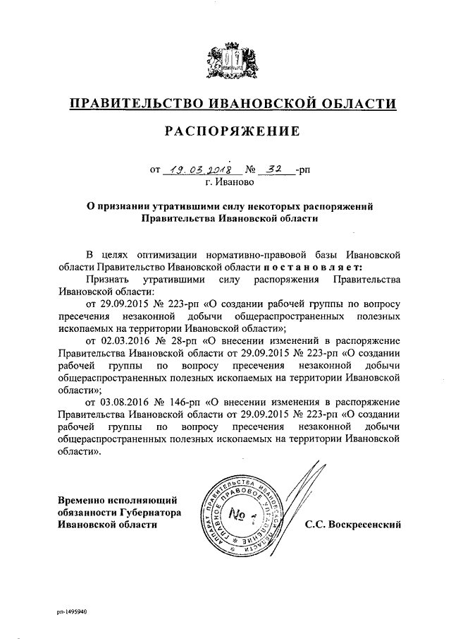 Распоряжение Правительства Ивановской области от 19.03.2018 N 32-рп "О признании утратившими силу некоторых распоряжений Правительства Ивановской области"
