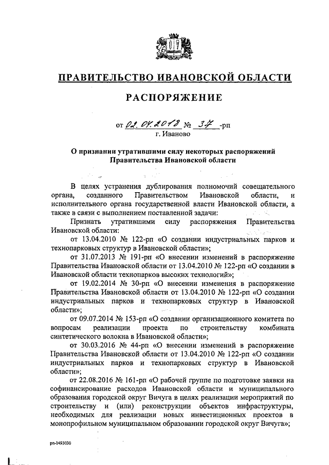 Распоряжение Правительства Ивановской области от 02.04.2018 N 37-рп "О признании утратившими силу некоторых распоряжений Правительства Ивановской области"