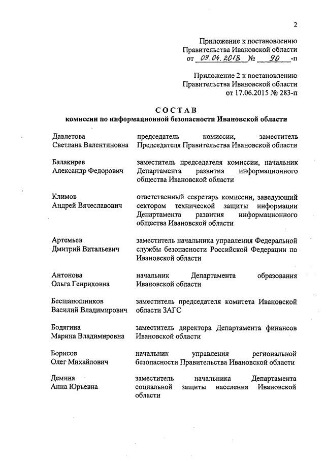 Постановление Правительства Ивановской области от 09.04.2018 N 90-п "О внесении изменений в постановление Правительства Ивановской области от 17.06.2015 N 283-п "О комиссии по информационной безопасности Ивановской области"