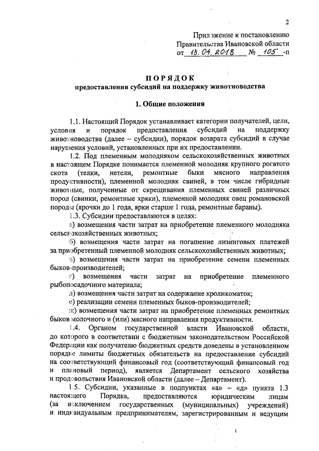 Постановление Правительства Ивановской области от 13.04.2018 N 105-п "Об утверждении Порядка предоставления субсидий на поддержку животноводства"