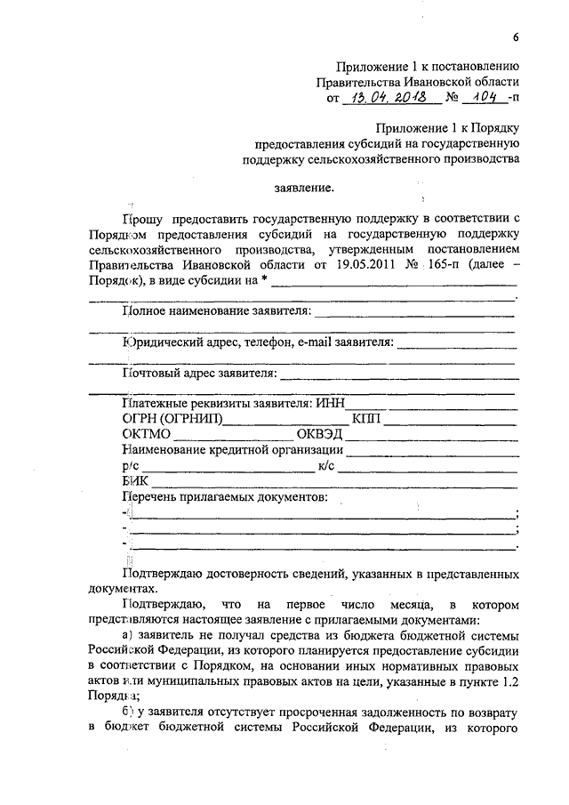 Постановление Правительства Ивановской области от 13.04.2018 N 104-п "О внесении изменений в постановление Правительства Ивановской области от 19.05.2011 N 165-п "Об утверждении Порядка предоставления субсидий на государственную поддержку сельскохозяйственного производства" (вместе с "Размером первоначального взноса и номенклатурой предметов лизинга, по которым предоставляется субсидия, в соответствии с Общероссийским классификатором продукции по видам экономической деятельности (ОКПД2) ОК 034-2014, утвержденным приказом Росстандарта от 31.01.2014 N 14-ст")