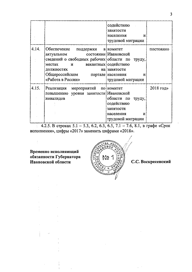 Распоряжение Правительства Ивановской области от 02.04.2018 N 38-рп "О внесении изменений в распоряжение Правительства Ивановской области от 15.05.2015 N 111-рп "Об утверждении плана мероприятий исполнительных органов государственной власти Ивановской области по выполнению Соглашения по регулированию социально-трудовых и связанных с ними экономических отношений между Правительством Ивановской области, областным объединением организаций профессиональных союзов, областным объединением работодателей на 2015 - 2017 годы"
