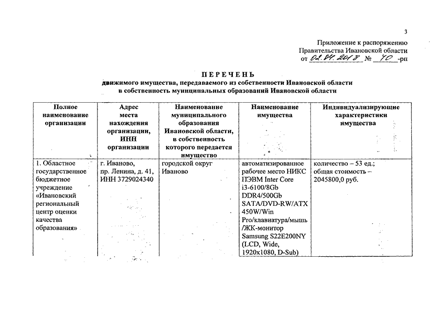 Распоряжение Правительства Ивановской области от 02.04.2018 N 40-рп "О передаче движимого имущества из собственности Ивановской области в собственность муниципальных образований Ивановской области"