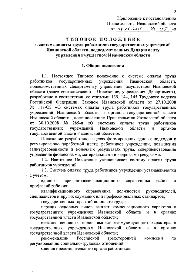 Постановление Правительства Ивановской области от 08.05.2018 N 125-п "О системе оплаты труда работников государственных учреждений Ивановской области, подведомственных Департаменту управления имуществом Ивановской области" (вместе с "Типовым положением о системе оплаты труда работников государственных учреждений Ивановской области, подведомственных Департаменту управления имуществом Ивановской области")