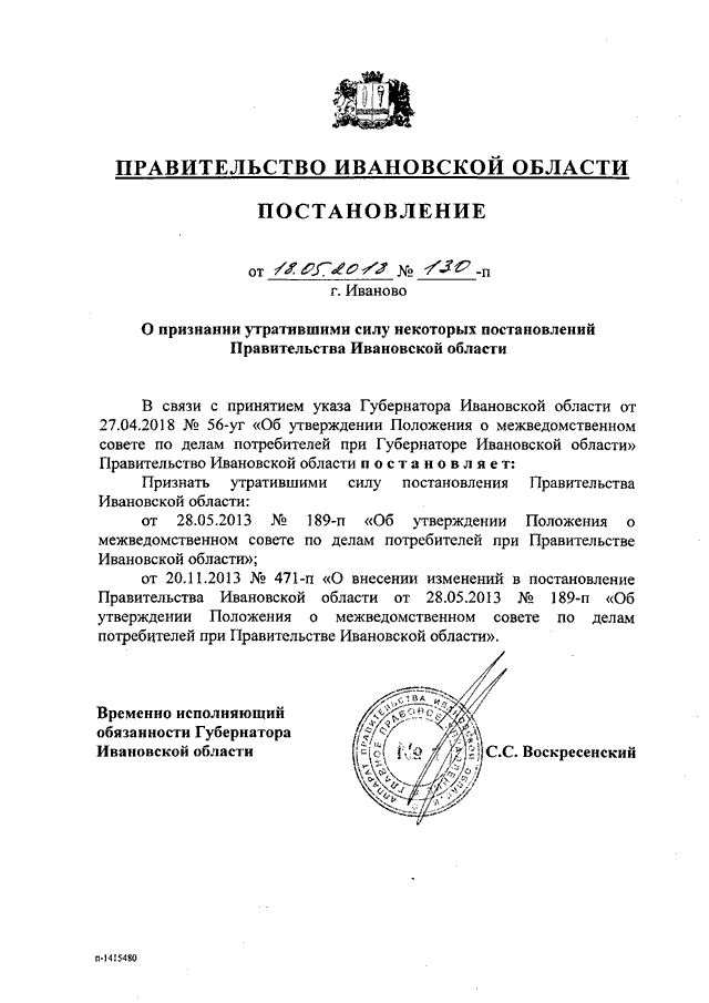 Постановление Правительства Ивановской области от 18.05.2018 N 130-п "О признании утратившими силу некоторых постановлений Правительства Ивановской области"