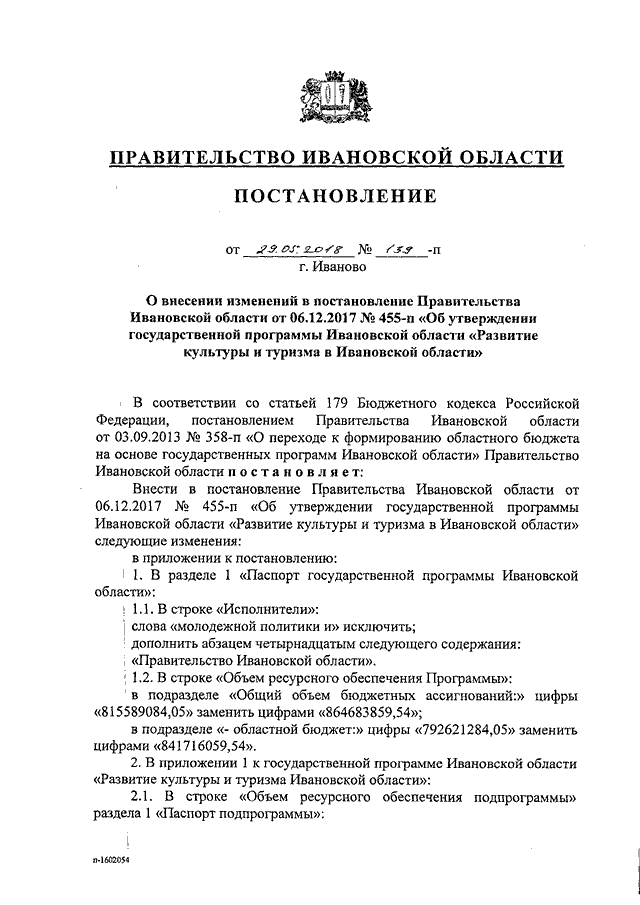 Постановление Правительства Ивановской области от 29.05.2018 N 139-п "О внесении изменений в постановление Правительства Ивановской области от 06.12.2017 N 455-п "Об утверждении государственной программы Ивановской области "Развитие культуры и туризма в Ивановской области"