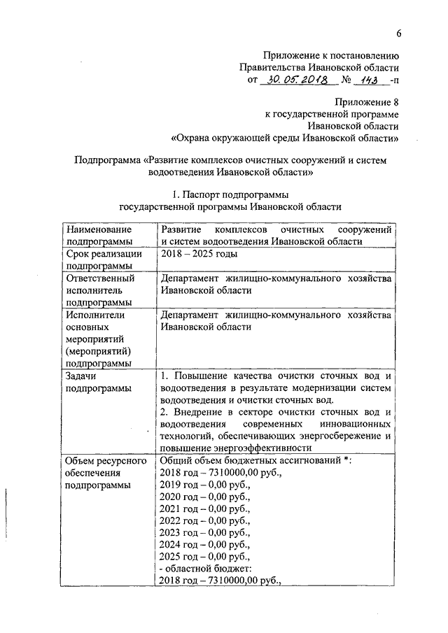 Постановление Правительства Ивановской области от 30.05.2018 N 143-п "О внесении изменений в постановление Правительства Ивановской области от 13.11.2013 N 452-п "Об утверждении государственной программы Ивановской области "Охрана окружающей среды Ивановской области" (вместе с "Подпрограммой "Развитие комплексов очистных сооружений и систем водоотведения Ивановской области")