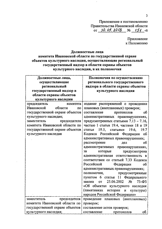 Постановление Правительства Ивановской области от 30.05.2018 N 151-п "О внесении изменений в постановление Правительства Ивановской области от 24.12.2015 N 594-п "Об утверждении Положения о комитете Ивановской области по государственной охране объектов культурного наследия"