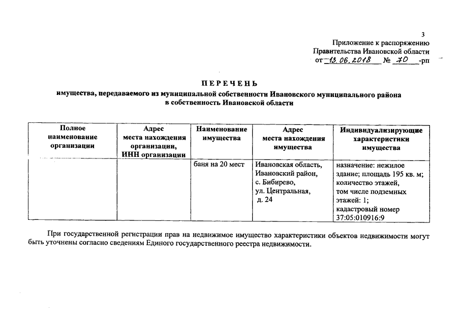 Распоряжение Правительства Ивановской области от 13.06.2018 N 70-рп "О передаче имущества из муниципальной собственности Ивановского муниципального района в собственность Ивановской области"