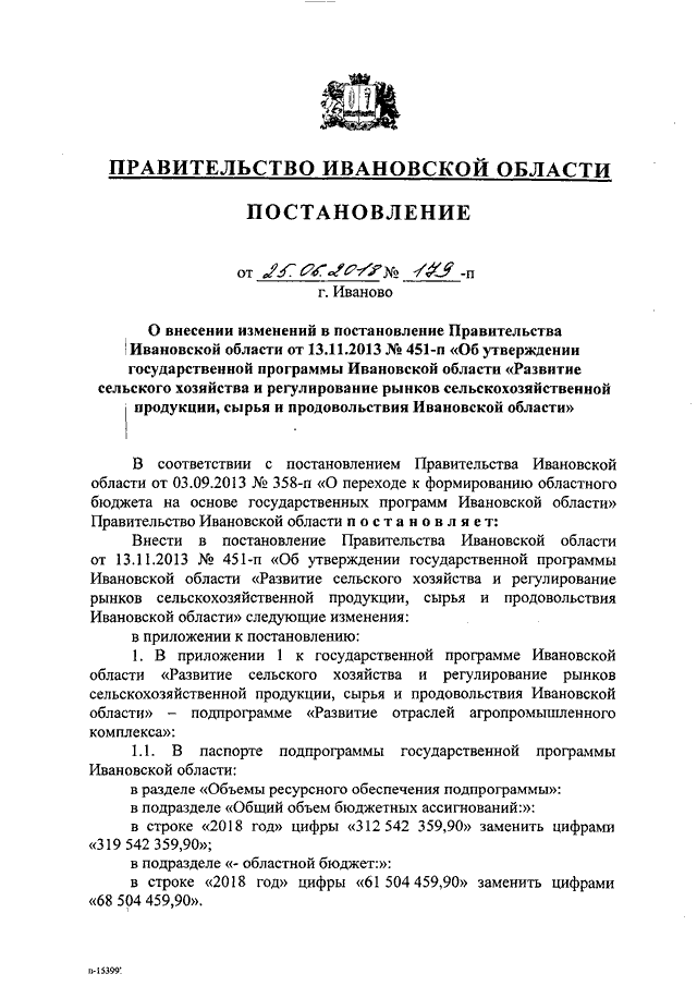 Постановление Правительства Ивановской области от 25.06.2018 N 179-п "О внесении изменений в постановление Правительства Ивановской области от 13.11.2013 N 451-п "Об утверждении государственной программы Ивановской области "Развитие сельского хозяйства и регулирование рынков сельскохозяйственной продукции, сырья и продовольствия Ивановской области" (вместе с "Порядком предоставления и распределения субсидий бюджетам муниципальных образований Ивановской области на разработку проектно-сметной документации объектов социальной и инженерной инфраструктуры населенных пунктов, расположенных в сельской местности")