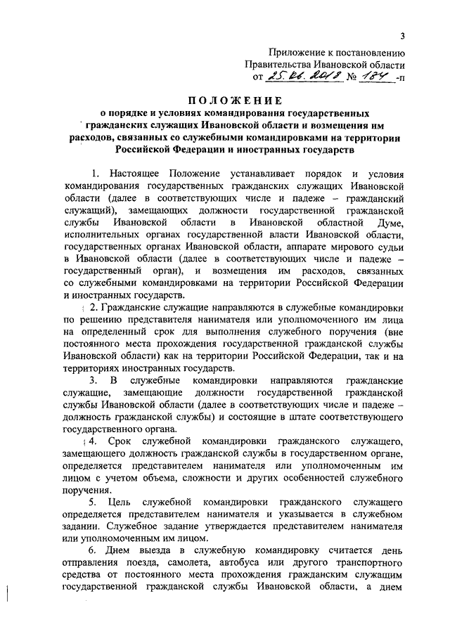 Постановление Правительства Ивановской области от 25.06.2018 N 184-п "Об утверждении Положения о порядке и условиях командирования государственных гражданских служащих Ивановской области и возмещения им расходов, связанных со служебными командировками на территории Российской Федерации и иностранных государств"