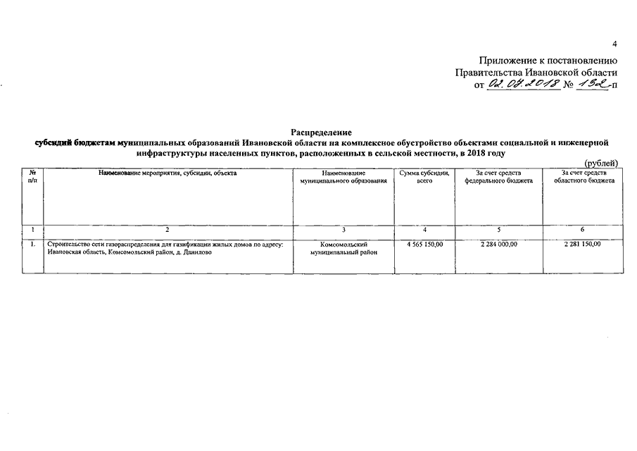 Постановление Правительства Ивановской области от 02.07.2018 N 192-п "О распределении субсидий бюджетам муниципальных образований Ивановской области на комплексное обустройство объектами социальной и инженерной инфраструктуры населенных пунктов, расположенных в сельской местности, в 2018 году"