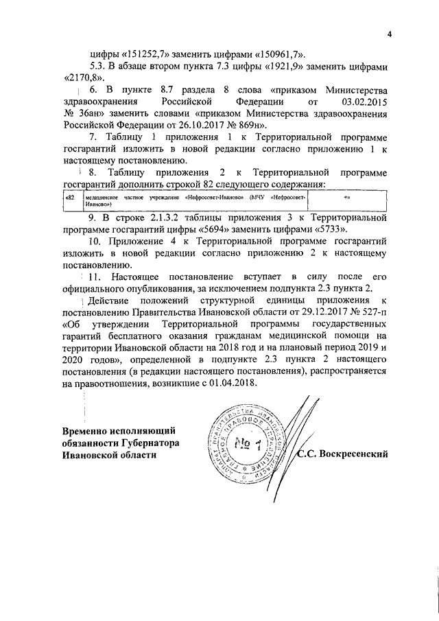 Постановление Правительства Ивановской области от 16.07.2018 N 201-п "О внесении изменений в постановление Правительства Ивановской области от 29.12.2017 N 527-п "Об утверждении Территориальной программы государственных гарантий бесплатного оказания гражданам медицинской помощи на территории Ивановской области на 2018 год и на плановый период 2019 и 2020 годов"