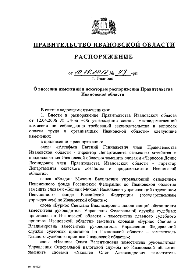 Распоряжение Правительства Ивановской области от 10.07.2018 N 79-рп "О внесении изменений в некоторые распоряжения Правительства Ивановской области"