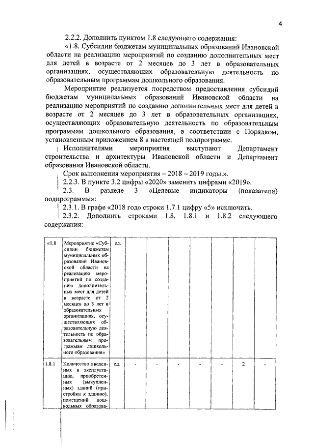 Постановление Правительства Ивановской области от 19.07.2018 N 212-п "О внесении изменений в постановление Правительства Ивановской области от 13.11.2013 N 450-п "Об утверждении государственной программы "Развитие образования Ивановской области" (вместе с "Порядком предоставления и распределения субсидий бюджетам муниципальных образований Ивановской области на реализацию мероприятий по созданию дополнительных мест для детей в возрасте от 2 месяцев до 3 лет в образовательных организациях, осуществляющих образовательную деятельность по образовательным программам дошкольного образования", "Порядком предоставления и распределения субсидий из областного бюджета субъектам малого и среднего предпринимательства в целях финансового обеспечения затрат, связанных с созданием и (или) обеспечением деятельности центров молодежного инновационного творчества", "Порядком предоставления и распределения субсидий бюджетам муниципальных образований Ивановской области на капитальный ремонт объектов дополнительного образования детей")
