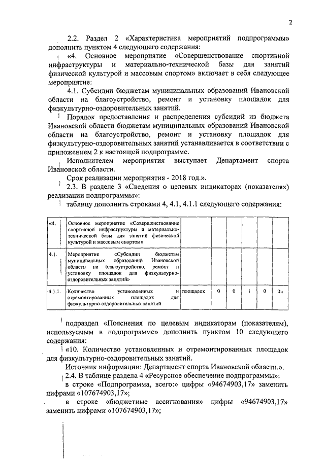 Постановление Правительства Ивановской области от 24.07.2018 N 215-п "О внесении изменений в постановление Правительства Ивановской области от 18.02.2016 N 43-п "Об утверждении государственной программы Ивановской области "Развитие физической культуры и спорта в Ивановской области" (вместе с "Порядком предоставления и распределения субсидий из бюджета Ивановской области бюджетам муниципальных образований Ивановской области на благоустройство, ремонт и установку площадок для физкультурно-оздоровительных занятий")