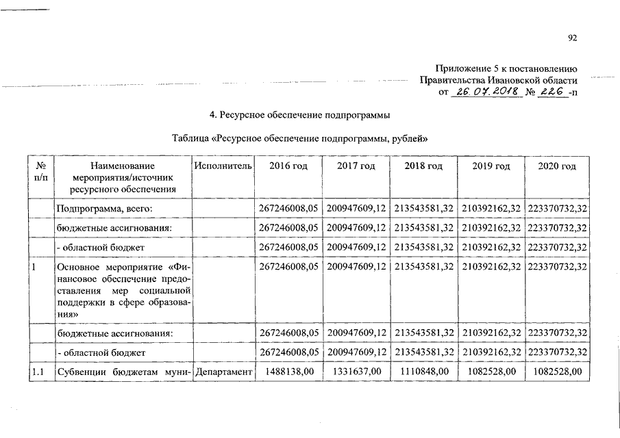 Постановление Правительства Ивановской области от 26.07.2018 N 226-п "О внесении изменений в постановление Правительства Ивановской области от 13.11.2013 N 450-п "Об утверждении государственной программы "Развитие образования Ивановской области" (вместе с "Порядком предоставления и распределения субсидий бюджетам муниципальных районов и городских округов Ивановской области на укрепление материально-технической базы муниципальных образовательных организаций Ивановской области")
