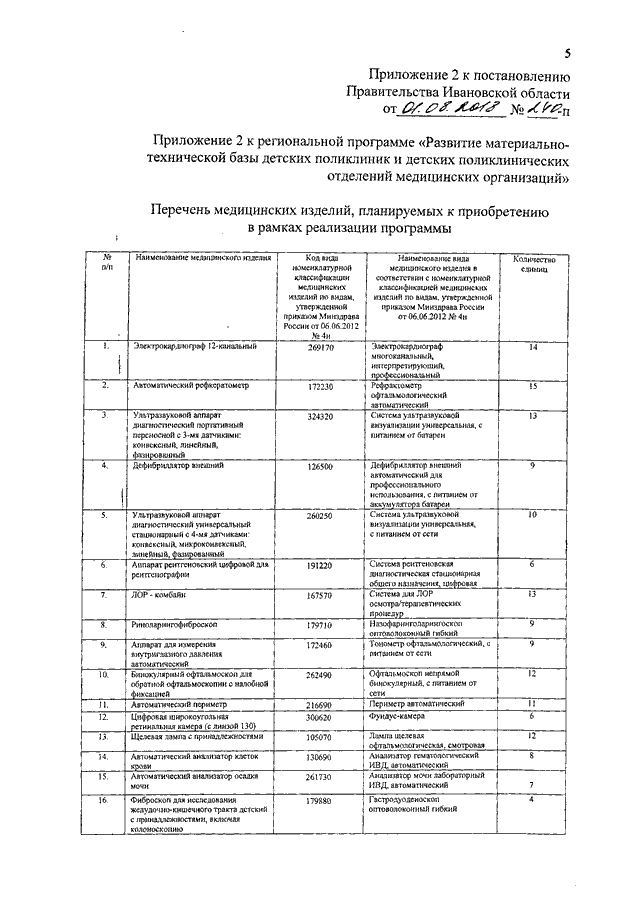 Постановление Правительства Ивановской области от 01.08.2018 N 240-п "О внесении изменений в постановление Правительства Ивановской области от 13.07.2018 N 200-п "Об утверждении региональной программы "Развитие материально-технической базы детских поликлиник и детских поликлинических отделений медицинских организаций" (вместе с "Перечнем медицинских организаций Ивановской области, участвующих в реализации мероприятий программы", "Перечнем медицинских изделий, планируемых к приобретению в рамках реализации программы", "Перечнем медицинских организаций Ивановской области, участвующих в реализации мероприятий программы, в которых будет обеспечена своевременная подготовка соответствующих помещений для детских поликлиник и детских поликлинических отделений для установки приобретаемых медицинских изделий", "Перечнем медицинских организаций, в которых будет обеспечена своевременная подготовка медицинских работников, имеющих соответствующий уровень образования и квалификации для работы с приобретаемыми медицинскими изделиями", "Примерным перечнем организационно-планировочных решений внутренних пространств детских поликлиник и детских поликлинических отделений медицинских организаций, рекомендованных к реализации в рамках программы")
