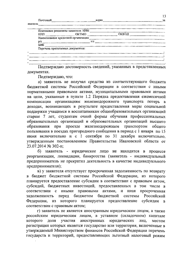 Постановление Правительства Ивановской области от 03.09.2018 N 271-п "О внесении изменений в постановление Правительства Ивановской области от 23.07.2014 N 302-п "О Порядке предоставления ежемесячной компенсации организациям железнодорожного транспорта потерь в доходах, возникающих в результате предоставления меры социальной поддержки учащимся и воспитанникам общеобразовательных организаций старше 7 лет, студентам очной формы обучения профессиональных образовательных организаций и образовательных организаций высшего образования при проезде железнодорожным транспортом общего пользования в поездах пригородного сообщения в период с 1 января по 15 июня включительно и с 1 сентября по 31 декабря включительно"