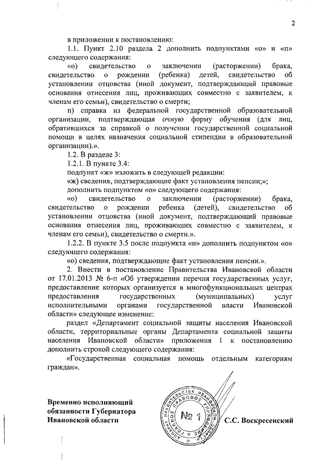Постановление Правительства Ивановской области от 03.09.2018 N 268-п "О внесении изменений в постановления Правительства Ивановской области от 28.09.2011 N 337-п "Об утверждении Порядка назначения, выплаты и определения размера государственной социальной помощи, оказываемой за счет средств областного бюджета, перечня документов, подтверждающих право на ее получение, формы социального контракта и порядка проведения мониторинга оказания государственной социальной помощи на основании социального контракта" и от 17.01.2013 N 6-п "Об утверждении перечня государственных услуг, предоставление которых организуется в многофункциональных центрах предоставления государственных (муниципальных) услуг исполнительными органами государственной власти Ивановской области"