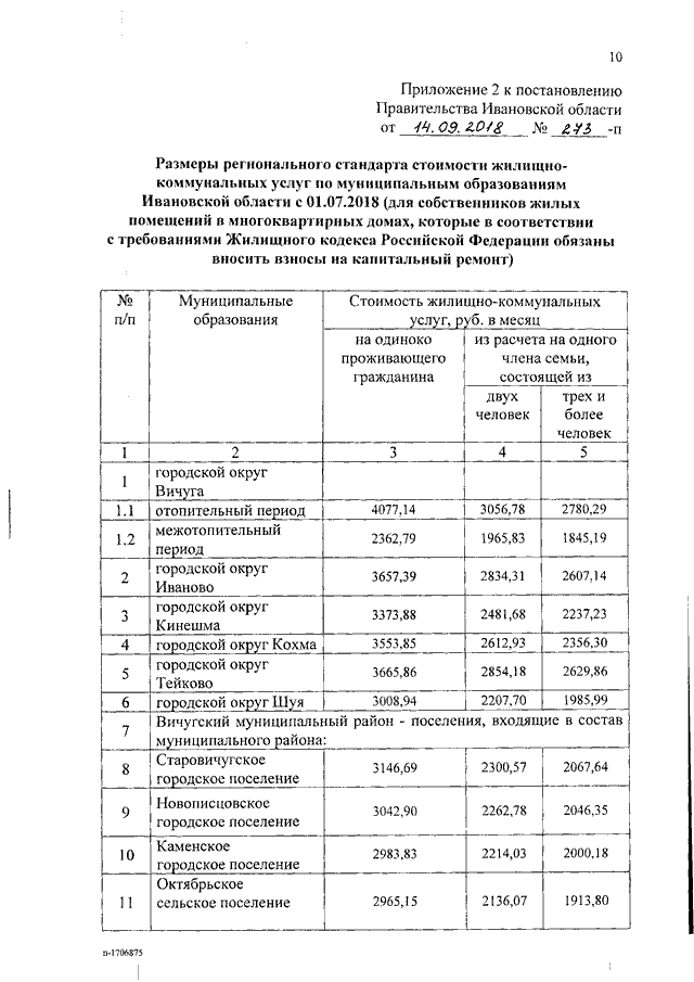 Постановление Правительства Ивановской области от 14.09.2018 N 273-п "Об установлении размеров региональных стандартов стоимости жилищно-коммунальных услуг"