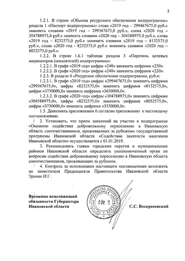 Постановление Правительства Ивановской области от 24.09.2018 N 281-п "О внесении изменений в постановление Правительства Ивановской области от 09.07.2013 N 279-п "Об утверждении государственной программы Ивановской области "Содействие занятости населения Ивановской области" (вместе с "Подпрограммой "Оказание содействия добровольному переселению в Ивановскую область соотечественников, проживающих за рубежом")