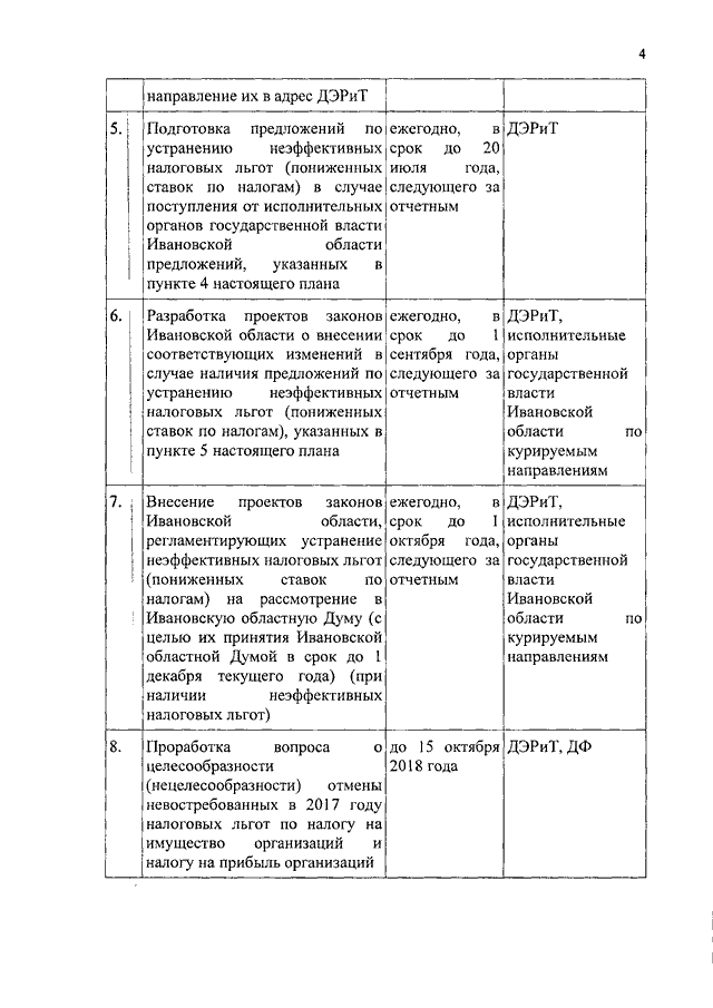 Распоряжение Правительства Ивановской области от 14.09.2018 N 109-рп "О внесении изменений в распоряжение Правительства Ивановской области от 23.06.2017 N 122-рп "О плане по устранению с 1 января 2018 года неэффективных налоговых льгот (пониженных ставок по налогам), установленных законами Ивановской области"