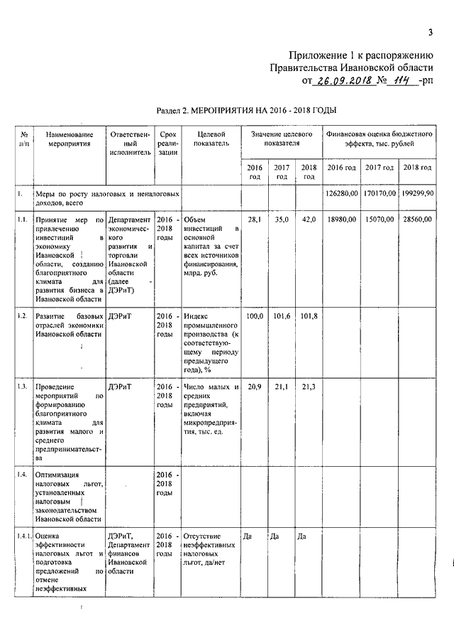 Распоряжение Правительства Ивановской области от 26.09.2018 N 114-рп "О внесении изменений в распоряжение Правительства Ивановской области от 19.02.2014 N 27-рп "О плане мероприятий по росту доходов, оптимизации расходов и совершенствованию долговой политики Ивановской области на 2014 - 2019 годы"