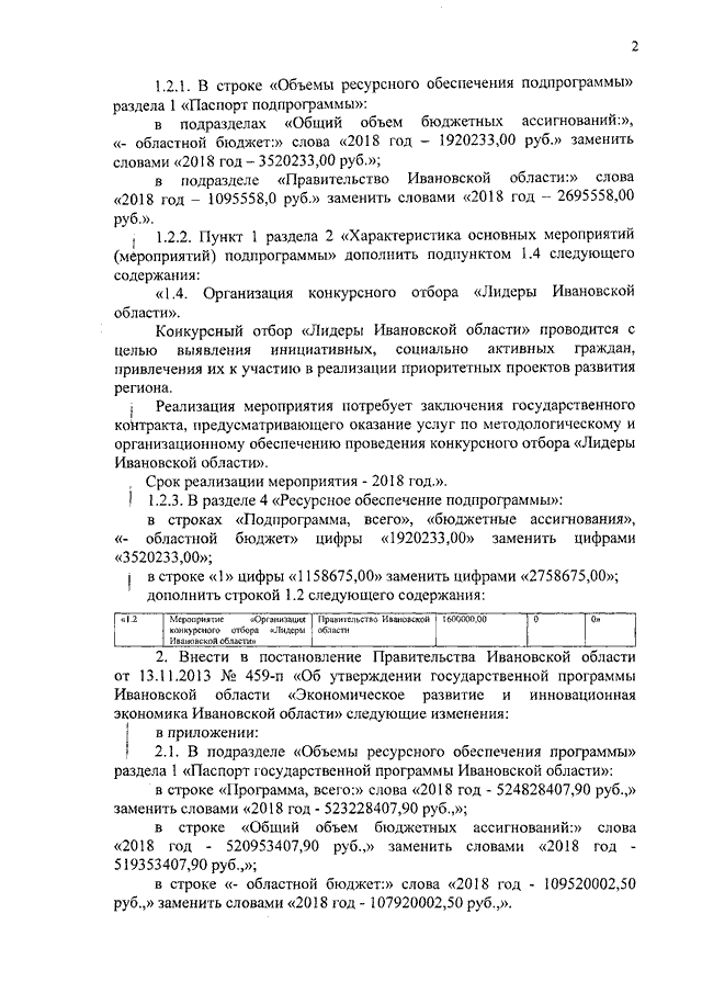 Постановление Правительства Ивановской области от 08.10.2018 N 288-п "О внесении изменений в постановления Правительства Ивановской области от 13.11.2013 N 454-п "Об утверждении государственной программы Ивановской области "Совершенствование институтов государственного управления и местного самоуправления Ивановской области" и от 13.11.2013 N 459-п "Об утверждении государственной программы Ивановской области "Экономическое развитие и инновационная экономика Ивановской области"