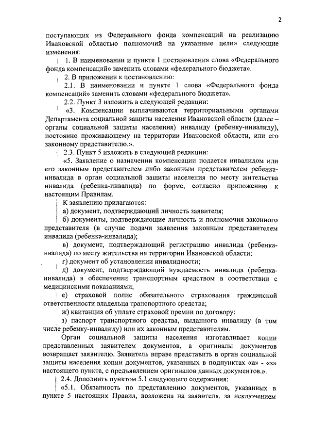 Постановление Правительства Ивановской области от 23.10.2018 N 303-п "О внесении изменений в постановление Правительства Ивановской области от 29.06.2011 N 231-п "Об утверждении Правил выплаты инвалидам (в том числе детям-инвалидам), имеющим транспортные средства в соответствии с медицинскими показаниями, или их законным представителям компенсации уплаченной ими страховой премии по договору обязательного страхования гражданской ответственности владельцев транспортных средств, а также расходования и учета средств, поступающих из Федерального фонда компенсаций на реализацию Ивановской областью полномочий на указанные цели"