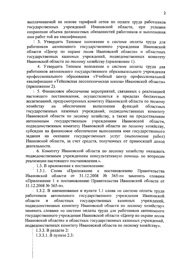 Постановление Правительства Ивановской области от 12.11.2018 N 316-п "О внесении изменений в постановление Правительства Ивановской области от 31.12.2008 N 365-п "О системе оплаты труда работников автономного государственного учреждения Ивановской области и областных государственных казенных учреждений, подведомственных комитету Ивановской области по лесному хозяйству" (вместе с "Типовым положением о системе оплаты труда для работников автономного государственного образовательного учреждения профессионального образования "Учебный центр профессиональной квалификации "Тейковская лесотехническая школа" Ивановской области")