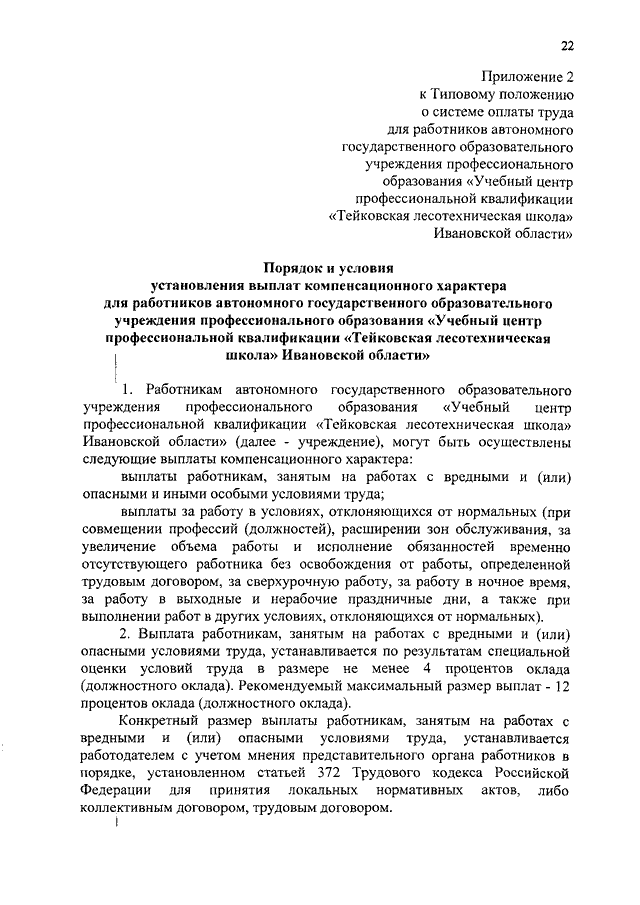 Постановление Правительства Ивановской области от 12.11.2018 N 316-п "О внесении изменений в постановление Правительства Ивановской области от 31.12.2008 N 365-п "О системе оплаты труда работников автономного государственного учреждения Ивановской области и областных государственных казенных учреждений, подведомственных комитету Ивановской области по лесному хозяйству" (вместе с "Типовым положением о системе оплаты труда для работников автономного государственного образовательного учреждения профессионального образования "Учебный центр профессиональной квалификации "Тейковская лесотехническая школа" Ивановской области")