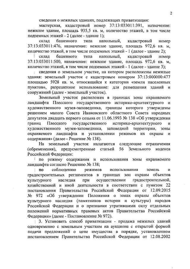 Распоряжение Правительства Ивановской области от 14.11.2018 N 133-рп "Об условиях приватизации нежилых зданий (мастерская, склады) с земельным участком по адресу: Ивановская область, Приволжский район, с. Северцево, находящихся в собственности Ивановской области"