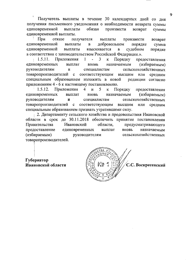 Постановление Правительства Ивановской области от 14.11.2018 N 321-п "О внесении изменений в постановление Правительства Ивановской области от 04.08.2009 N 232-п "Об утверждении порядков предоставления единовременных выплат выпускникам средних общеобразовательных школ, профтехучилищ (лицеев), техникумов (колледжей), получившим в указанных организациях соответствующие документы об образовании, работающим у сельскохозяйственных товаропроизводителей, в машинно-технологических (тракторных) станциях, а также вновь назначаемым (избираемым) руководителям и специалистам сельскохозяйственных товаропроизводителей с соответствующим высшим или средним специальным образованием"