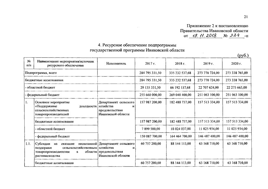 Постановление Правительства Ивановской области от 19.11.2018 N 324-п "О внесении изменений в постановление Правительства Ивановской области от 13.11.2013 N 451-п "Об утверждении государственной программы Ивановской области "Развитие сельского хозяйства и регулирование рынков сельскохозяйственной продукции, сырья и продовольствия Ивановской области"