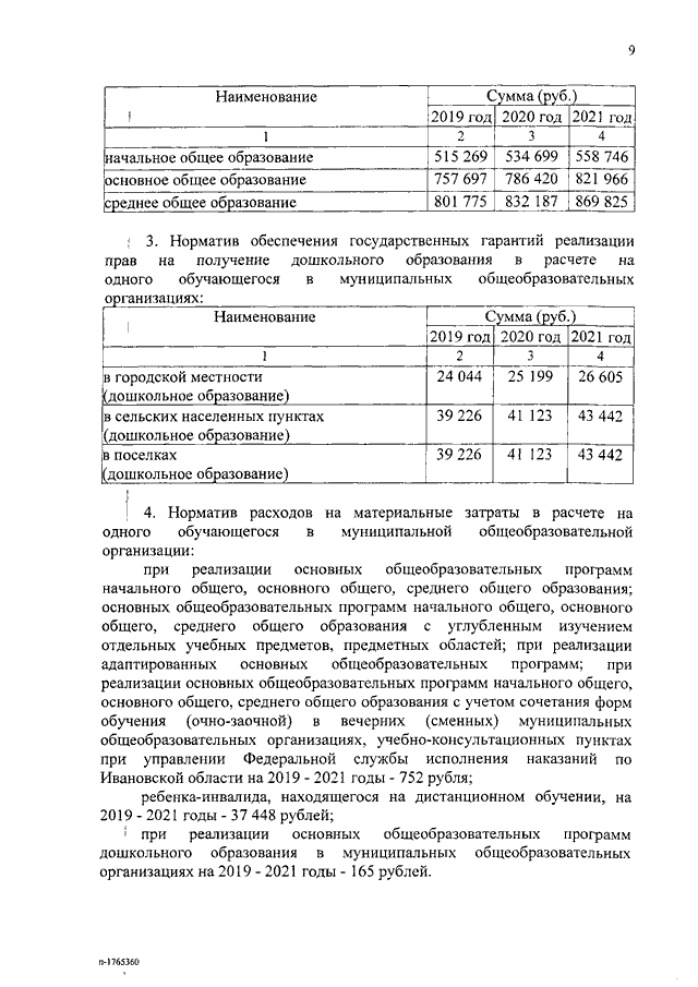Постановление Правительства Ивановской области от 27.11.2018 N 333-п "Об утверждении нормативов обеспечения государственных гарантий реализации прав на получение общедоступного и бесплатного общего образования, обеспечения дополнительного образования в муниципальных образовательных организациях и возмещения затрат на финансовое обеспечение получения общего образования в частных образовательных организациях на 2019 год и на плановый период 2020 и 2021 годов" (вместе с "Нормативами обеспечения государственных гарантий реализации прав на получение общедоступного и бесплатного дошкольного, начального общего, основного общего, среднего общего образования в муниципальных общеобразовательных организациях, обеспечения дополнительного образования в муниципальных общеобразовательных организациях на 2019 год и на плановый период 2020 и 2021 годов", "Нормативами возмещения затрат на финансовое обеспечение получения дошкольного, начального общего, основного общего, среднего общего образования в частных общеобразовательных организациях, осуществляющих образовательную деятельность по имеющим государственную аккредитацию основным общеобразовательным программам, на 2019 год и на плановый период 2020 и 2021 годов", "Нормативами обеспечения государственных гарантий реализации прав на получение общедоступного и бесплатного дошкольного образования в муниципальных дошкольных образовательных организациях на 2019 год и на плановый период 2020 и 2021 годов", "Нормативами возмещения затрат на финансовое обеспечение получения дошкольного образования в частных дошкольных образовательных организациях на 2019 год и на плановый период 2020 и 2021 годов", "Перечнем малокомплектных муниципальных общеобразовательных организаций, для которых применяется норматив финансового обеспечения, учитывающий затраты, не зависящие от количества обучающихся, для расчета субвенций местным бюджетам в размере, необходимом для реализации основных общеобразовательных программ в части финансирования расходов на оплату труда работников общеобразовательных организаций, расходов на учебники, учебные пособия, средства обучения, игры, игрушки (за исключением расходов на содержание зданий и оплату коммунальных услуг, осуществляемых из местных бюджетов)")