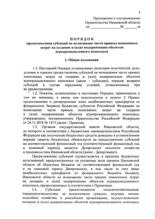 Постановление Правительства Ивановской области от 05.12.2018 N 347-п "Об утверждении Порядка предоставления субсидий на возмещение части прямых понесенных затрат на создание и (или) модернизацию объектов агропромышленного комплекса"