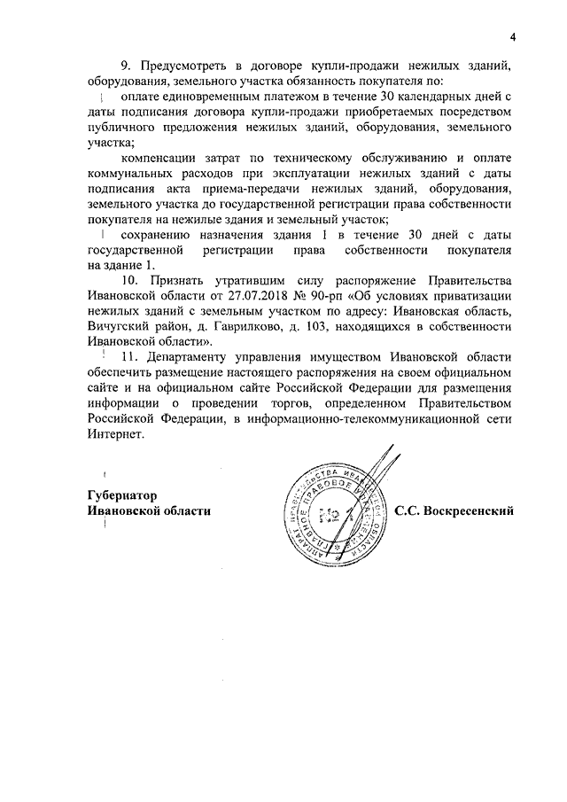 Распоряжение Правительства Ивановской области от 06.12.2018 N 147-рп "Об условиях приватизации нежилых зданий с земельным участком по адресу: Ивановская область, Вичугский район, д. Гаврилково, д. 103, находящихся в собственности Ивановской области"