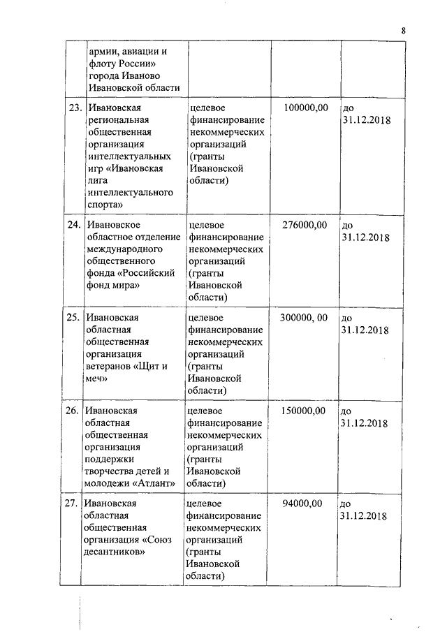 Распоряжение Правительства Ивановской области от 10.12.2018 N 151-рп "О внесении изменений в распоряжение Правительства Ивановской области от 13.08.2018 N 95-рп "О формах, объемах и сроках оказания поддержки социально ориентированным некоммерческим организациям, зарегистрированным и действующим на территории Ивановской области, в 2018 году" (вместе с "Перечнем социально ориентированных некоммерческих организаций, зарегистрированных и действующих на территории Ивановской области, - получателей поддержки в 2018 году, формы, объемы и сроки оказания им поддержки")