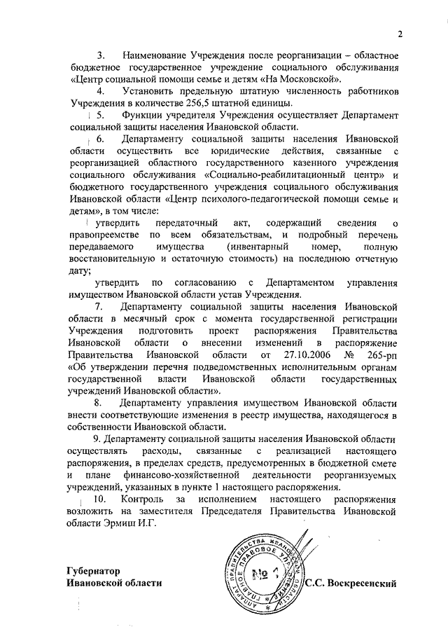 Распоряжение Правительства Ивановской области от 10.12.2018 N 157-рп "О реорганизации областного государственного казенного учреждения социального обслуживания "Социально-реабилитационный центр" и бюджетного государственного учреждения социального обслуживания Ивановской области "Центр психолого-педагогической помощи семье и детям"