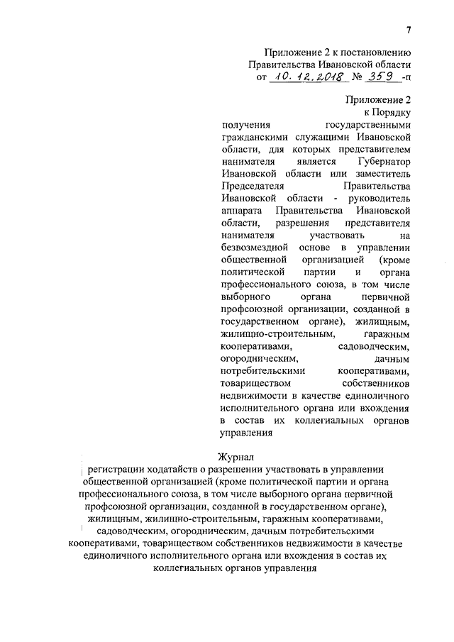 Постановление Правительства Ивановской области от 10.12.2018 N 359-п "О внесении изменений в постановления Правительства Ивановской области от 27.03.2013 N 111-п "Об утверждении Положения о проверке достоверности и полноты сведений о доходах, об имуществе и обязательствах имущественного характера, представляемых гражданами, претендующими на замещение должностей руководителей государственных учреждений Ивановской области, и лицами, замещающими должности руководителей государственных учреждений Ивановской области" и от 24.08.2017 N 333-п "Об утверждении Порядка участия государственных гражданских служащих Ивановской области, для которых представителем нанимателя является Губернатор Ивановской области или член Правительства Ивановской области - руководитель аппарата Правительства Ивановской области, на безвозмездной основе в управлении общественной организацией (кроме политической партии), жилищным, жилищно-строительным, гаражным кооперативами, садоводческим, огородническим, дачным потребительскими кооперативами, товариществом собственников недвижимости в качестве единоличного исполнительного органа или вхождения в состав их коллегиальных органов управления с разрешения представителя нанимателя"