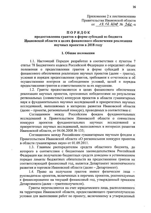 Постановление Правительства Ивановской области от 13.12.2018 N 362-п "О внесении изменений в постановление Правительства Ивановской области от 13.11.2013 N 459-п "Об утверждении государственной программы Ивановской области "Экономическое развитие и инновационная экономика Ивановской области" и об утверждении Порядка предоставления грантов в форме субсидий из бюджета Ивановской области в целях финансового обеспечения реализации научных проектов в 2018 году"