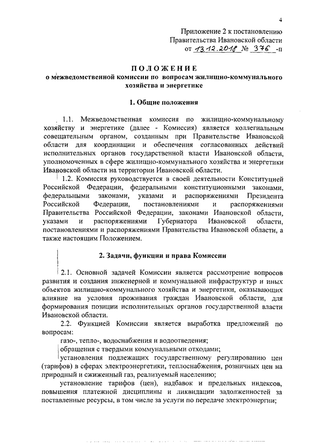 Постановление Правительства Ивановской области от 13.12.2018 N 376-п "О создании межведомственной комиссии по жилищно-коммунальному хозяйству и энергетике" (вместе с "Положением о межведомственной комиссии по вопросам жилищно-коммунального хозяйства и энергетике")