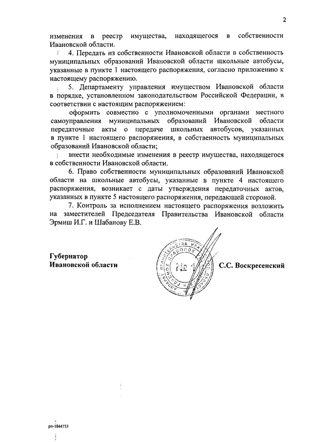 Распоряжение Правительства Ивановской области от 21.12.2018 N 171-рп "О принятии школьных автобусов в собственность Ивановской области и передаче школьных автобусов в собственность муниципальных образований Ивановской области"