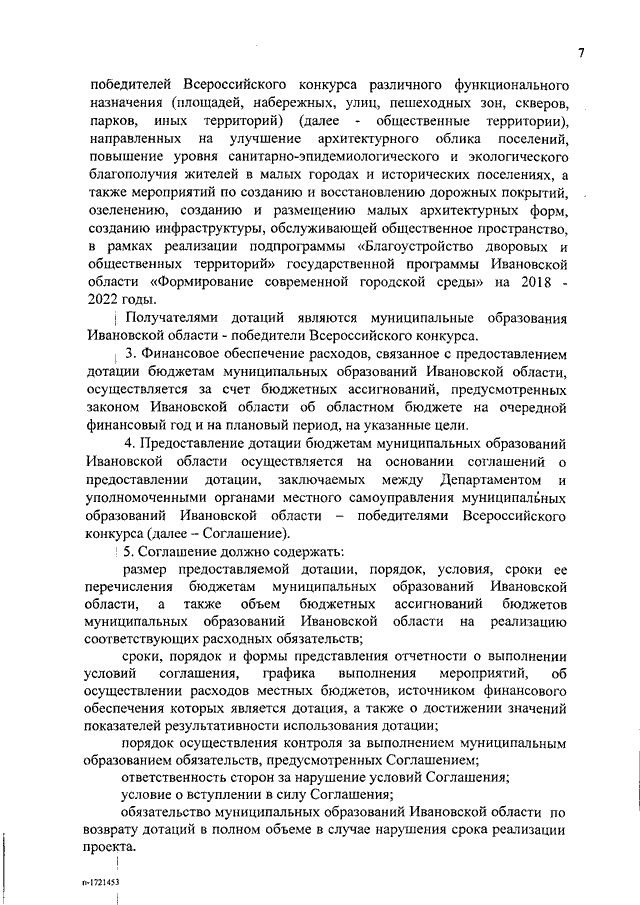 Постановление Правительства Ивановской области от 24.12.2018 N 390-п "О внесении изменений в постановление Правительства Ивановской области от 01.09.2017 N 337-п "Об утверждении государственной программы Ивановской области "Формирование современной городской среды" на 2018 - 2022 годы" (вместе с "Порядком предоставления из областного бюджета бюджетам муниципальных образований Ивановской области иных межбюджетных трансфертов в форме дотаций на поддержку мер по обеспечению сбалансированности местных бюджетов в целях реализации проектов создания комфортной городской среды в малых городах и исторических поселениях - победителях Всероссийского конкурса лучших проектов создания комфортной городской среды")