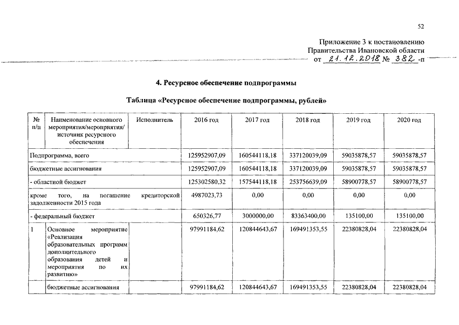 Постановление Правительства Ивановской области от 21.12.2018 N 382-п "О внесении изменений в постановление Правительства Ивановской области от 13.11.2013 N 450-п "Об утверждении государственной программы "Развитие образования Ивановской области"