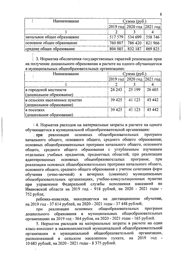 Постановление Правительства Ивановской области от 28.12.2018 N 405-п "О внесении изменений в постановление Правительства Ивановской области от 27.11.2018 N 333-п "Об утверждении нормативов обеспечения государственных гарантий реализации прав на получение общедоступного и бесплатного общего образования, обеспечения дополнительного образования в муниципальных образовательных организациях и возмещения затрат на финансовое обеспечение получения общего образования в частных образовательных организациях на 2019 год и на плановый период 2020 и 2021 годов" (вместе с "Нормативами обеспечения государственных гарантий реализации прав на получение общедоступного и бесплатного дошкольного, начального общего, основного общего, среднего общего образования в муниципальных общеобразовательных организациях, обеспечения дополнительного образования в муниципальных общеобразовательных организациях на 2019 год и на плановый период 2020 и 2021 годов", "Нормативами возмещения затрат на финансовое обеспечение получения дошкольного, начального общего, основного общего, среднего общего образования в частных общеобразовательных организациях, осуществляющих образовательную деятельность по имеющим государственную аккредитацию основным общеобразовательным программам, на 2019 год и на плановый период 2020 и 2021 годов", "Нормативами обеспечения государственных гарантий реализации прав на получение общедоступного и бесплатного дошкольного образования в муниципальных дошкольных образовательных организациях на 2019 год и на плановый период 2020 и 2021 годов", "Нормативами возмещения затрат на финансовое обеспечение получения дошкольного образования в частных дошкольных образовательных организациях на 2019 год и на плановый период 2020 и 2021 годов")